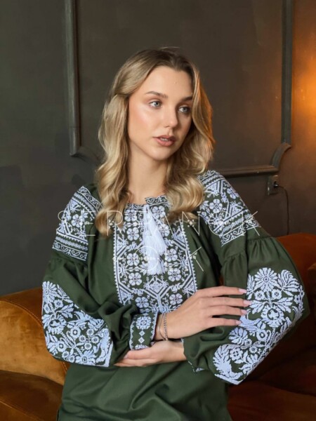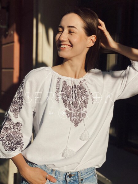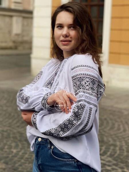 Класична жіноча вишиванка хрестиком на білому домотканому полотні “Зореслава”