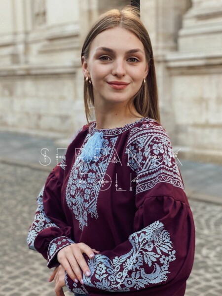 Неймовірна жіноча вишиванка кольору марсала в стилі бохо “Лакі”