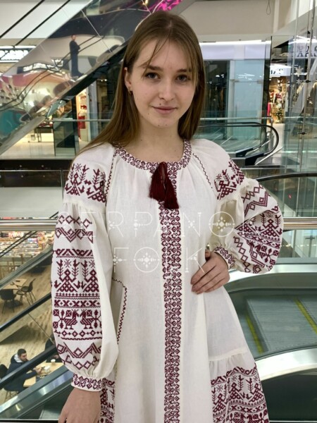 Жіноча вишита сукня на лляній тканині молочного кольору “Макош”