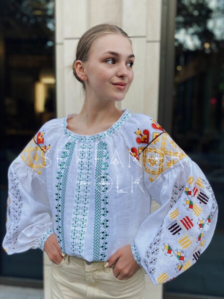 Вишукана біла жіноча вишиванка бохо з чернівецьким орнаментом “Цитрина”