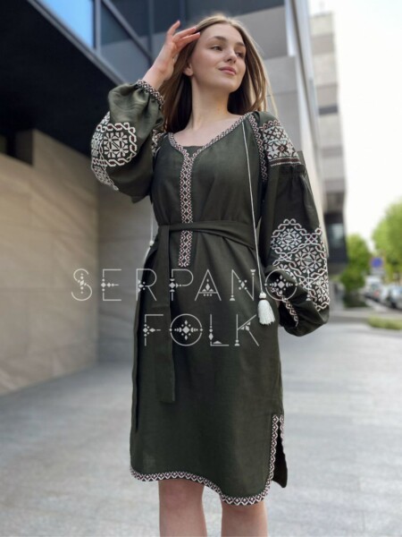 Жіноча вишита сукня бохо в кольорі хакі “Бенгалія”