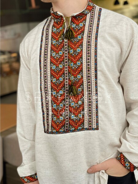 Чоловіча вишита сорочка з ручною вишивкою на лляній тканині “Вернигора”