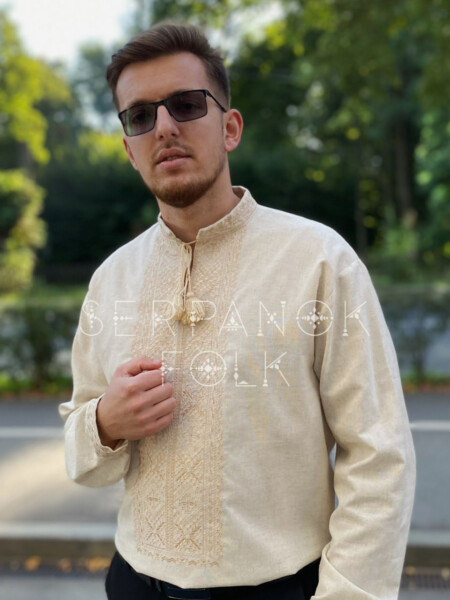Молочна стильна чоловіча вишита сорочка на домотканому полотні “Златослав”