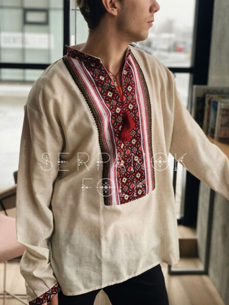 Українська традиційна чоловіча вишита сорочка з ручною вишивкою “Тарас”