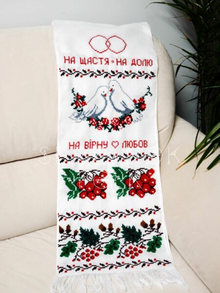 Весільний рушник з голубами ручна робота “На щастя, на долю, на вірну любов”