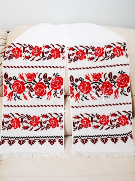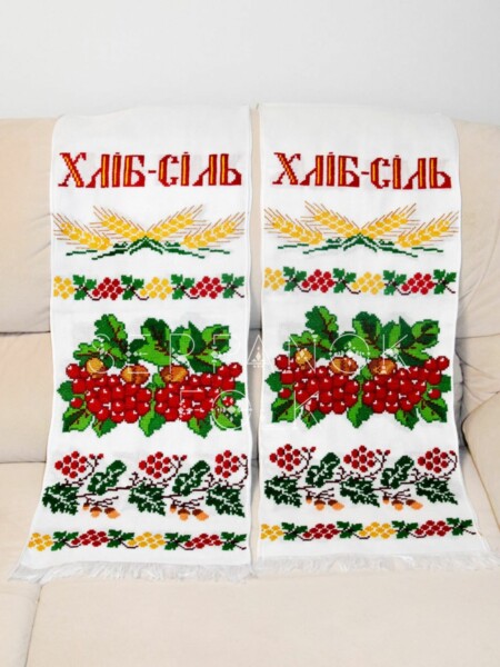 Виготовлений з натуральних матеріалів та вишитий вручну хрестиком, цей рушник має унікальний дизайн, який символізує красу української культури. Використовуючи його, ви додаєте урочистості та традиційності вашому святкуванню. Цей рушник додасть теплоти та колориту до будь-якого свята.
