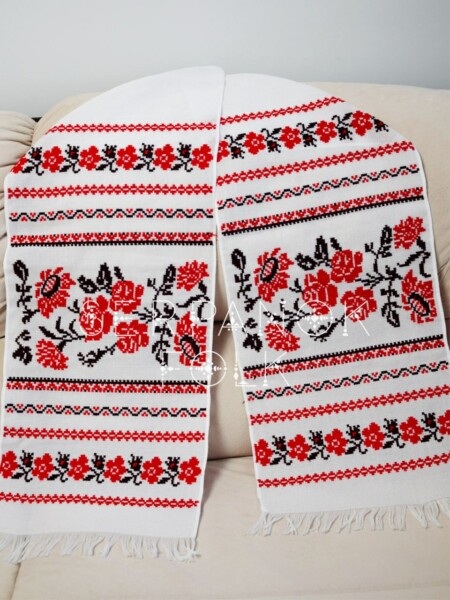 Рушник вишитий хрестиком у традиційному українському стилі і призначений спеціально для подачі короваю на весільному столі. Він надає святковий і національний колорит будь-якому святкуванню. Вишитий рушник “Сіль” буде чудовим подарунком для тих, хто цінує українську національну культуру та традиції.