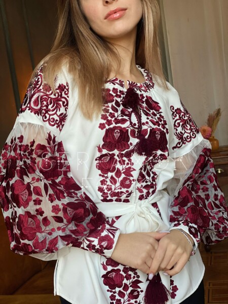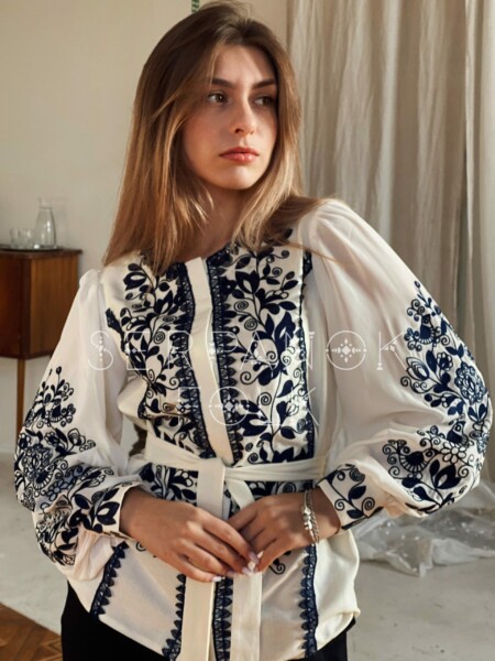 Ексклюзивна біло-молочна жіноча вишиванка з квітковою вишивкою “Тамерлана”